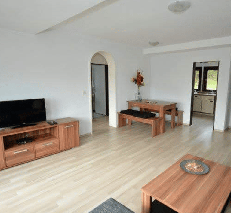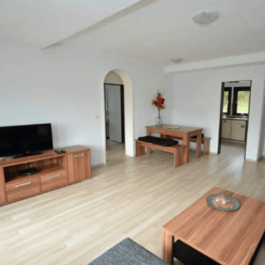 Dit ruime appartement biedt een lichte en gezellige huiskamer waar u kunt ontspannen en genieten van het prachtige uitzicht over het dal van Hesborn.